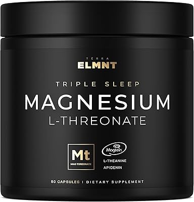 Triple Sleep Magnesium L-Threonate w. Apigenin, Theanine & Magtein Magnesium L Threonate - High Absorption Magnesium Supplement Capsules for Men and Women Magnesium Powder Pills