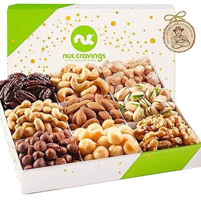 NUT CRAVINGS - Easter Mixed Nuts Gift Basket in White Gold Box 9 Assortments Ramadan Gifts Treats for Adults, Food Arrangement, Healthy Snack Care Package, Kosher
